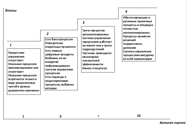В зависимости от количества набранных баллов организация может быть отнесена к одной из четырех групп цифровой зрелости [3, 7].