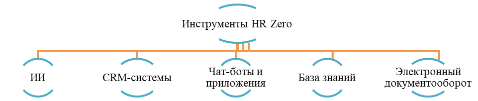 HR Zero представляет собой комплексный подход к оптимизации управления персоналом. Данный подход подразумевает пересмотр существующих кадровых процедур и автоматизации стандартных задач. Целью такой концепции является повышение эффективности работы сотрудников и высвобождение времени и ресурсов организации. Для реализации HR Zero используются различные инструменты, некоторые из которых представлены на рисунке 4.