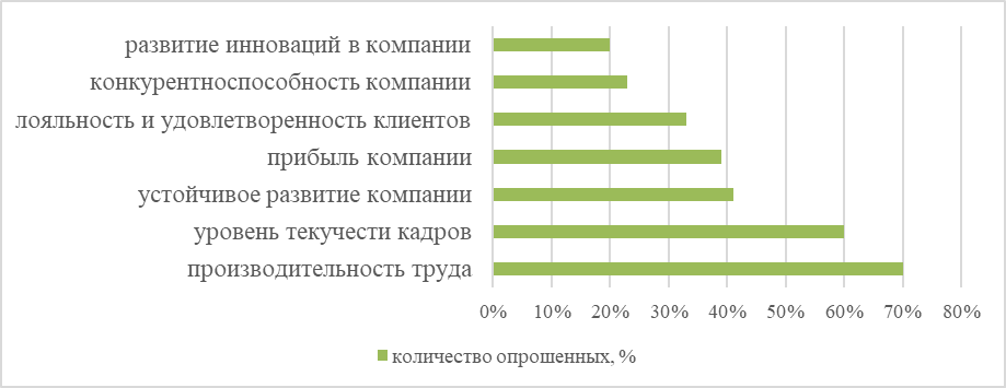 Как следует из рисунка 6, уровень вовлеченности персонала напрямую влияет на такие бизнес-показатели в организации, как производительность труда и уровень текучести кадров, что приводит к необходимости постоянной оценки изучаемого показателя.