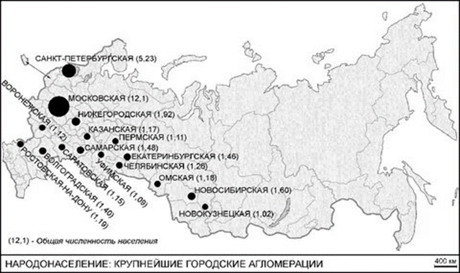 Рис. 1. Карта с расположением современных агломераций России