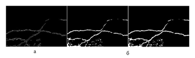 Такой подход позволил значительно повысить качество обнаружения трещин: на результирующих изображениях трещины выглядели чёткими, непрерывными и свободными от артефактов, характерных для первоначальных результатов.