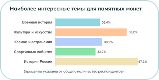 Рис. 6. Результаты выбора участниками опроса наиболее интересных, по их мнению, тем для памятных монет