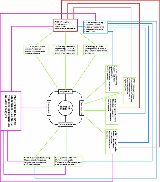 Современные исследования сосредотачивают значительный объем интеллектуальных ресурсов на создании и развитии технологий информационных систем управления предприятием (ИСУП), которые являются средствами по автоматическому мониторингу информации о ЖЦ производимой продукции и включают такие системы, как CRM (Customer Relationship Management – Управление взаимоотношениями с клиентами); CAM (Computer-Aided Manufacturing - автоматизированное производство); CAD (Computer-Aided Design автоматизированное проектирование); ERP (Enterprise Resource Planning планирование ресурсов предприятия) и множество других систем.