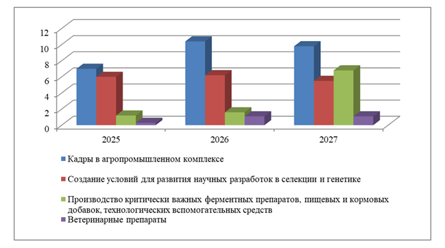 Рис. 2. Финансирование национального проекта «Технологическое обеспечение продовольственной безопасности» в 2025 – 2027 гг.