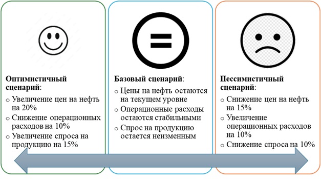 После разработки сценариев проводится их непосредственный анализ с целью оценки влияния каждого из них на финансовые показатели НПЗ путем моделирования выручки, затрат, прибыли и других ключевых финансовых метрик, а также оценки потенциальных рисков и возможностей, связанных с каждым сценарием.
