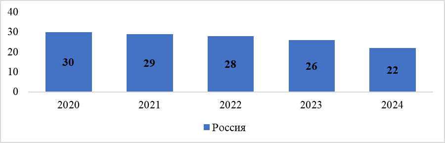 13. Индекс восприятия коррупции | Россия | 2024. Режим доступа: https://statbase.ru/data/rus-corruption-perceptions-index/?ysclid=mdghkm26av325414764 (дата обращения: 08.07.2025).