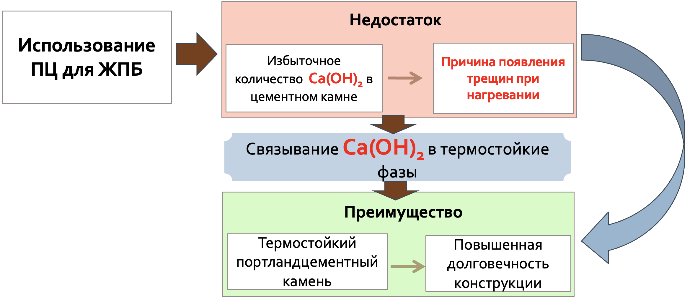 Рис. 1. Схема перехода недостатка использования портландцемента в ЖПБ