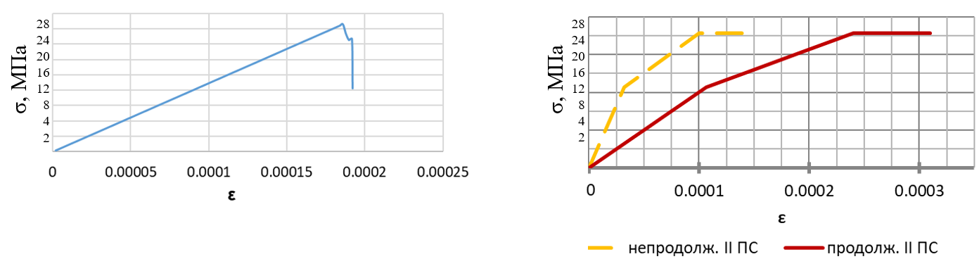 Рис. 8. Диаграмма σ-ε цементно-песчаной матрицы,