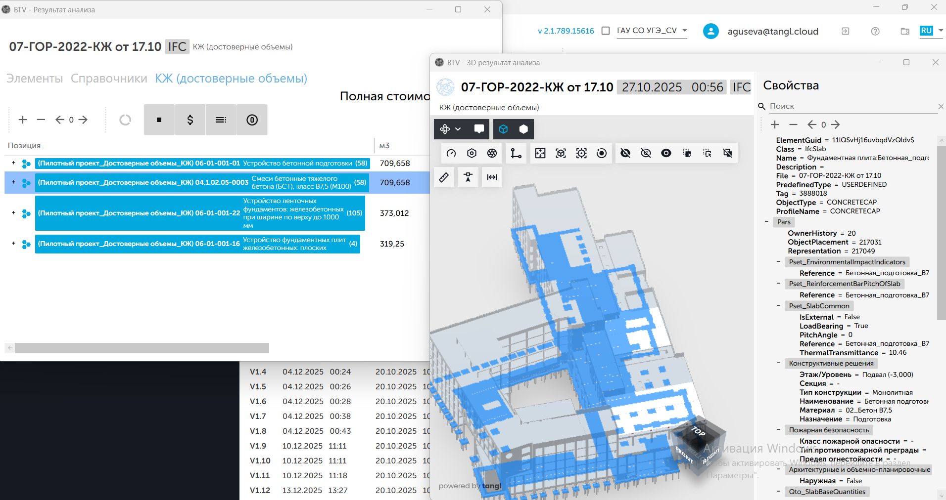 Результаты расчета количественных показателей в системе Tangl Value представлены в виде структурированных таблиц, автоматически сгенерированных на основе настроенных правил выборки из ЦИМ, где каждая позиция динамически связана с элементами ЦИМ, что можно применять при проверке при просмотре (рисунок 5).